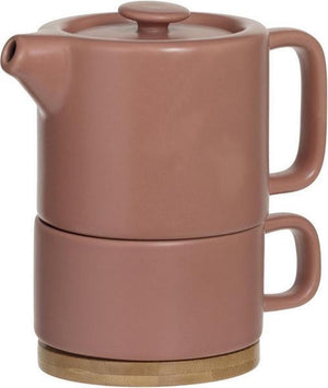 Stijlvolle theepot met bijpassend kopje, mat terracotta.