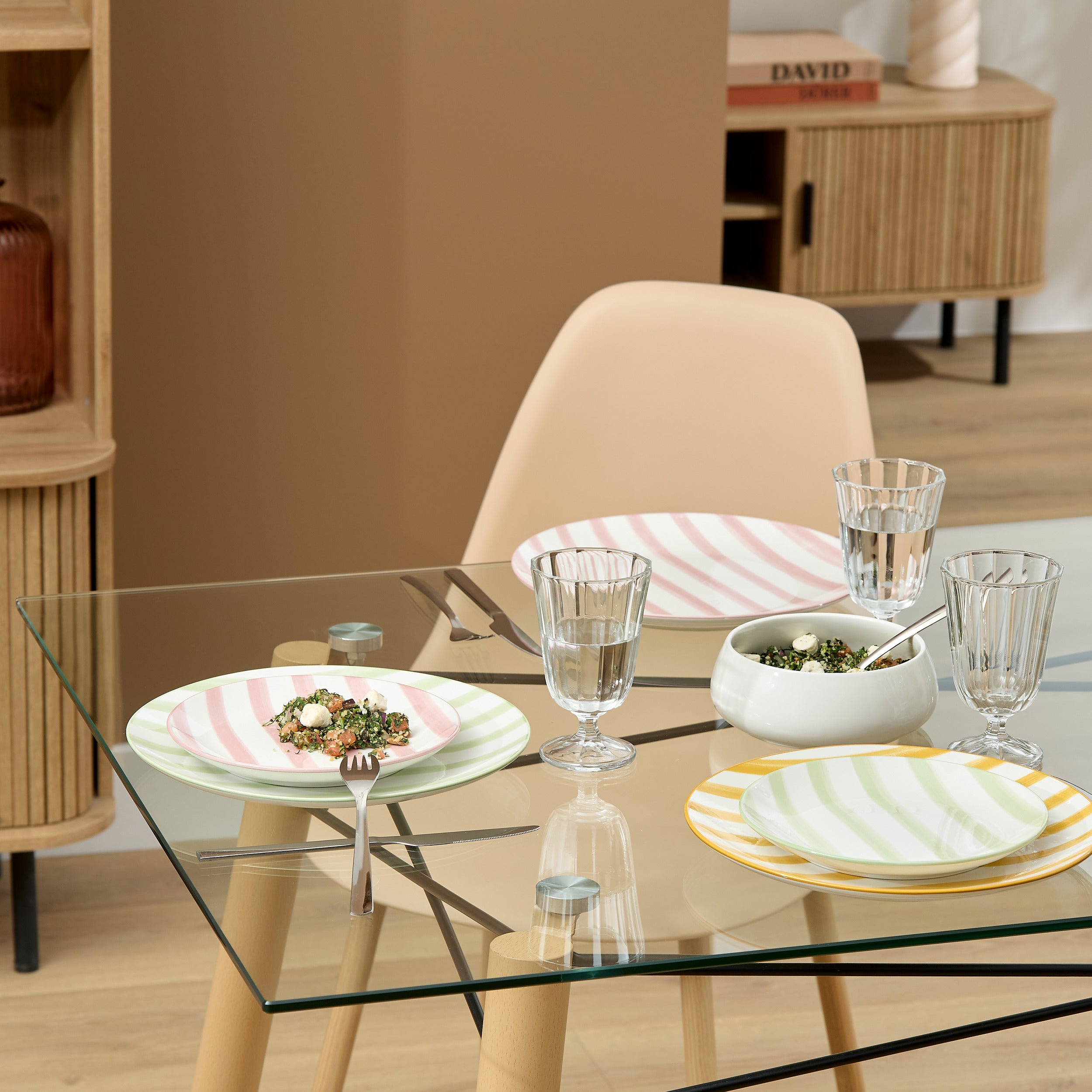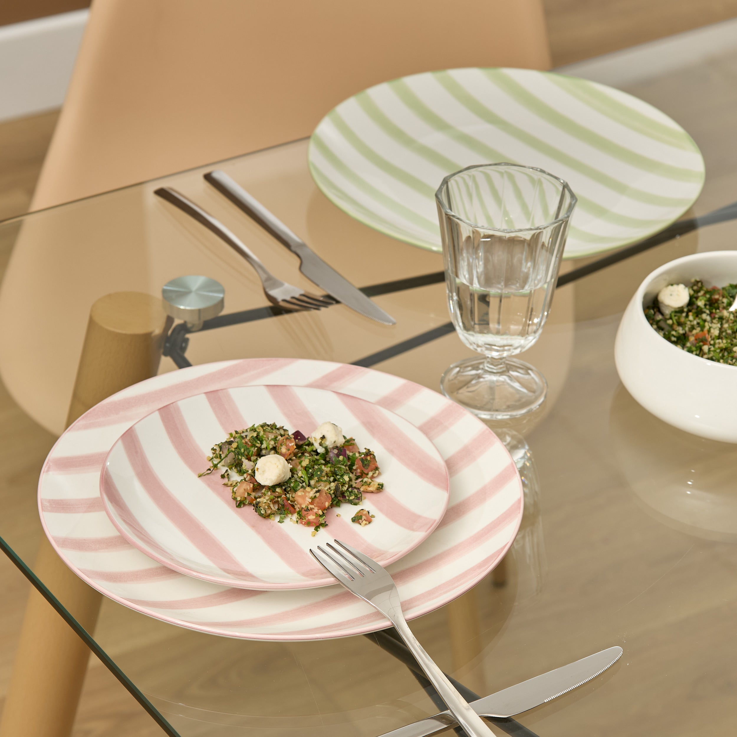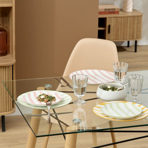Breng een frisse en speelse sfeer op tafel met deze set van 6 borden met roze strepen. Het stijlvolle streeppatroon geeft de borden een moderne en vrolijke uitstraling, perfect voor ontbijt, lunch of diner. Ideaal voor dagelijks gebruik én leuk om je tafel extra kleur te geven. 🍽️✨