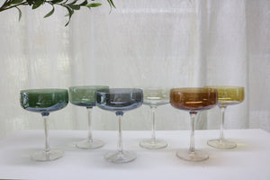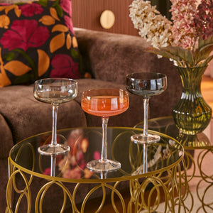Voeg een vleugje kleur en elegantie toe aan je tafel met deze stijlvolle champagnecoupes. Perfect voor feestelijke bubbels, cocktails of een chique dessertpresentatie.