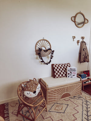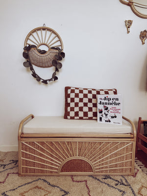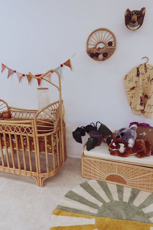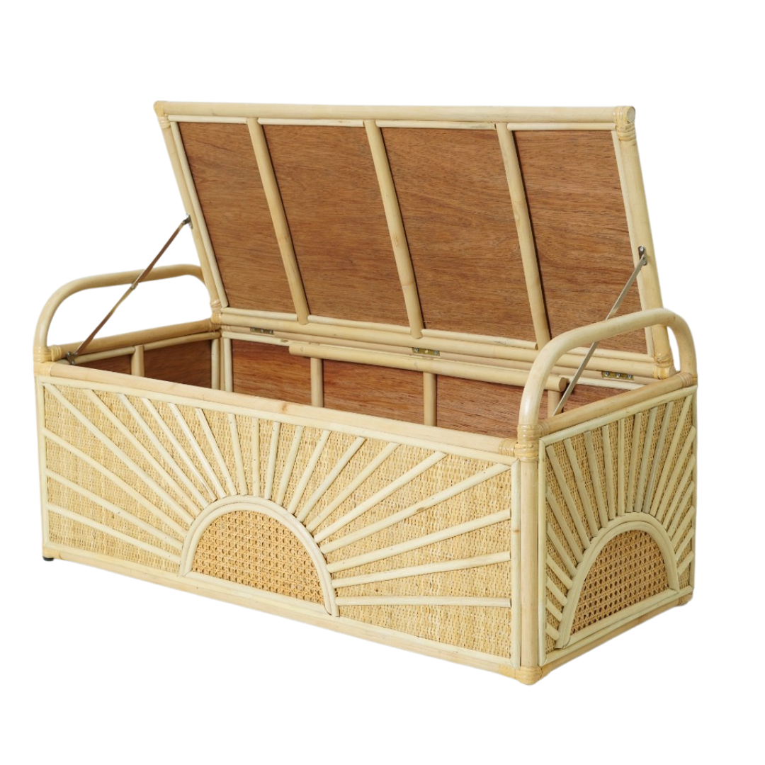 - Die Rattan Toy Box "Sun" ist eine schöne handgefertigt Spielzeugkiste mit zeitlosem und unisex -Design. Ein echter Augenbechiger im Zimmer Ihres Kindes oder in Ihrem Wohnzimmer!
