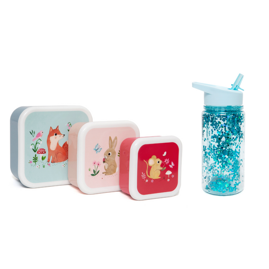 • BEAU by Bo Petit Monkey Back to School set - Snackdozen + Drinkfles Woodland/Glitter - Stone Blue/Dusty Aqua