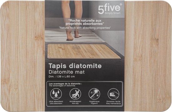 5Five Diatomite Bath mat with bamboo layer XL 39 x 60 - Water absorbent - Gray - Natural stone