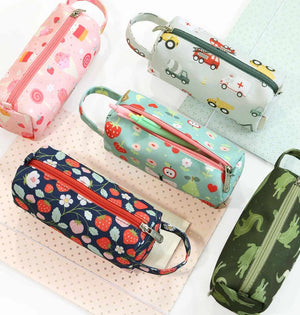 Pencil bag of a sustainable polyester with an ice cream print. The case ends with a zipper, is equipped with a lining, and has a handy handle.