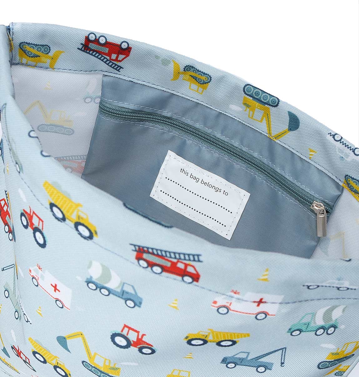 Pen bag of a sustainable polyester with a vehicle print. The case ends with a zipper, is equipped with a lining, and has a handy handle.