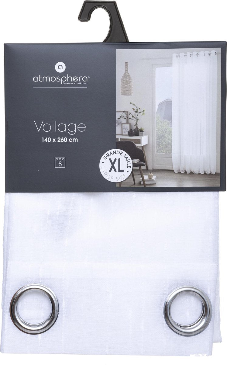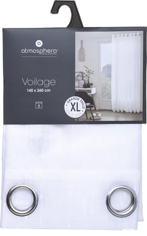 Atmosphera Anissa Voile Curtain 135x260cm - Ready made with rings - White