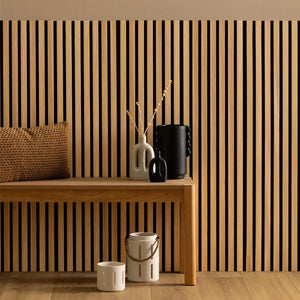 Give your interior a stylish upgrade with these modern wall panels in wood look! The vertical lines create a sleek and warm effect that fits perfectly in both bedrooms and living spaces. Easy to install, large in appearance.