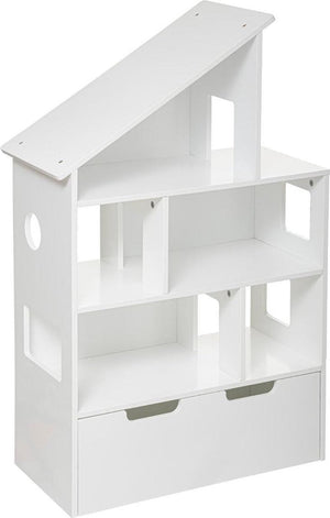 Beautiful and original shelf for children with wheels and in the shape of a dollhouse. The design has several storage shelves, a drawer and several decorative side windows. The little ones in the house will love it.