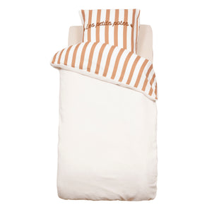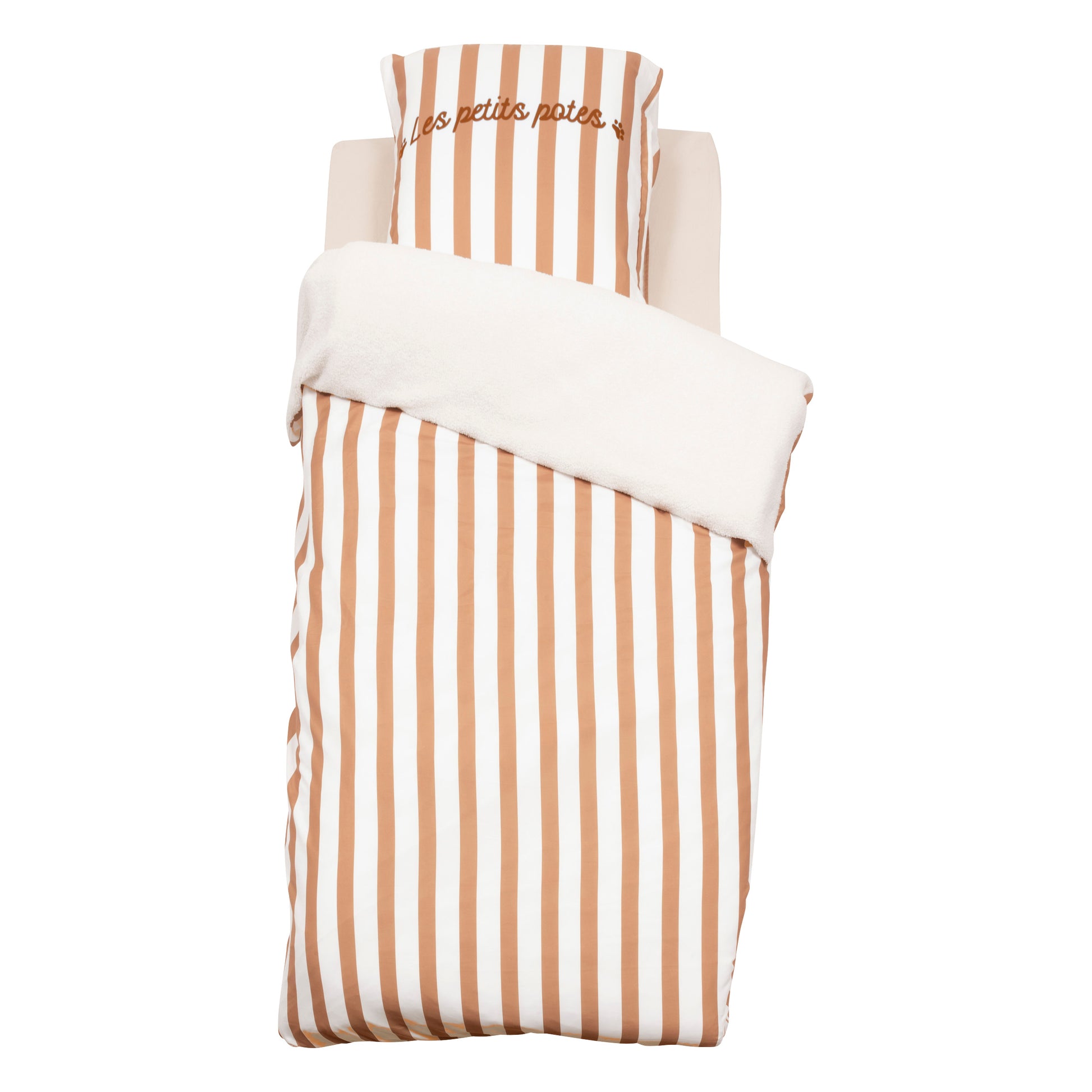 Maak van bedtijd een feestje met dit schattige dekbedovertrek in warme terracotta strepen!