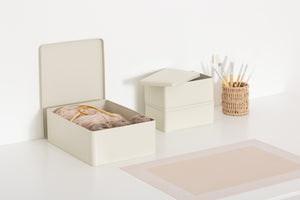 Opgeruimd staat netjes! Deze stijlvolle opbergdozen in neutrale tint brengen orde in elke ruimte. Perfect voor knutselmateriaal, documenten of kleine spulletjes – stapelbaar, praktisch en een lust voor het oog. 🧶📦✨