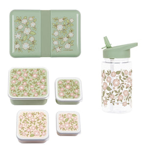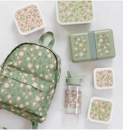 BEAU by Bo A Little Lovely Company Back to school set - Drinkfles/4 Snackdozen/Lunchbox - Bloesems Saliegroen