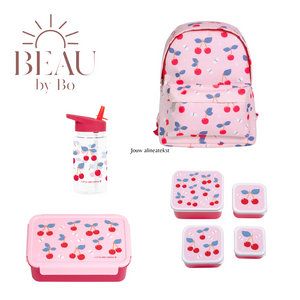 BEAU by Bo A Little Lovely Company Back to school set - Rugzak/Drinkfles/4 Snackdozen/Bentobox - Kersen