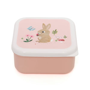 Een leuke drinkfles en set van 3 snackdozen met bosdiertjes.