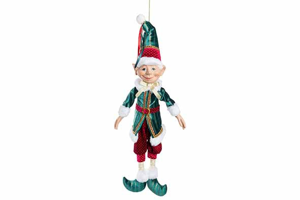 Cosy & Trendy Kerst Elf Hanger - 40x10x70cm - Bordeaux/Groen
