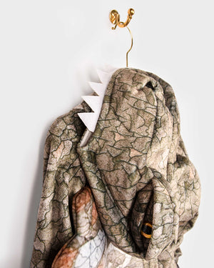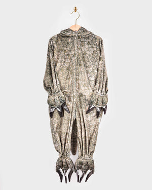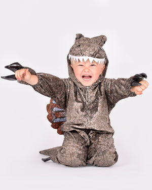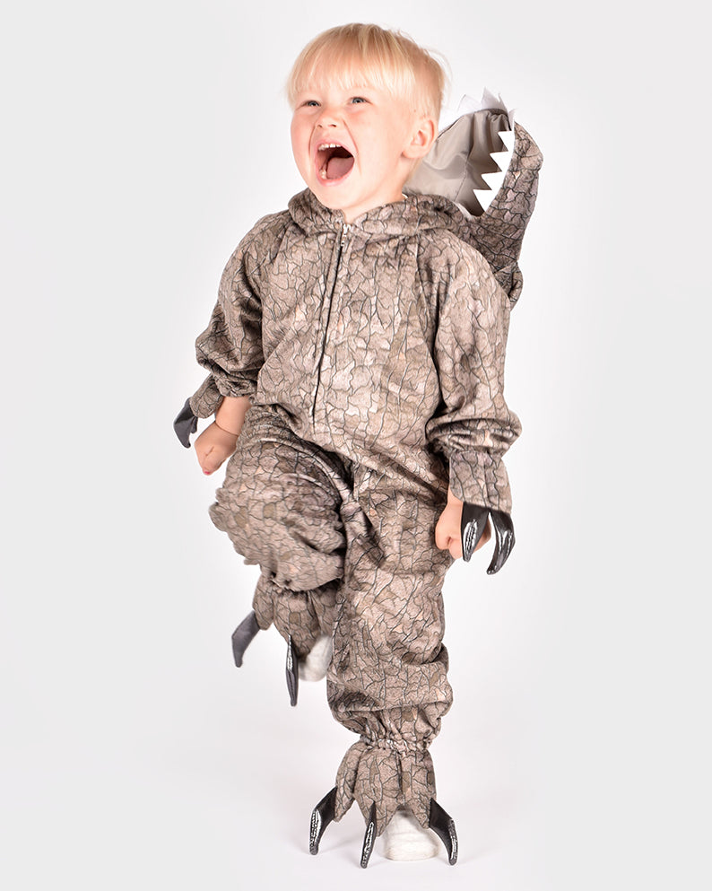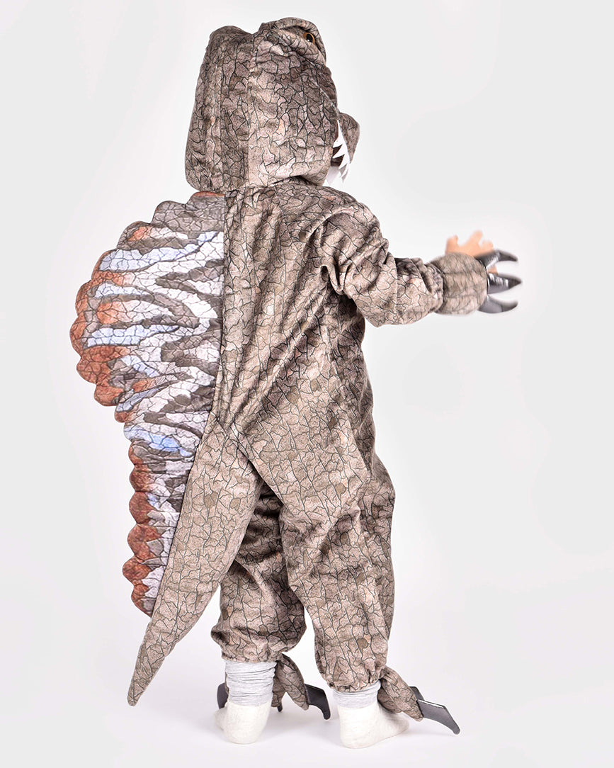 De spinosaurus leefde heel lang geleden - maar nu is hij terug. Ons schattige dinosauruskostuum in reptielgrijs heeft supergrote hoektanden en een cool rugschild, plus metaalkleurige klauwen en een lange staart. Wordt geleverd als een knus en speels eendelig kostuum dat sluit met een rits aan de voorkant. Elastische been- en mouwuiteinden.