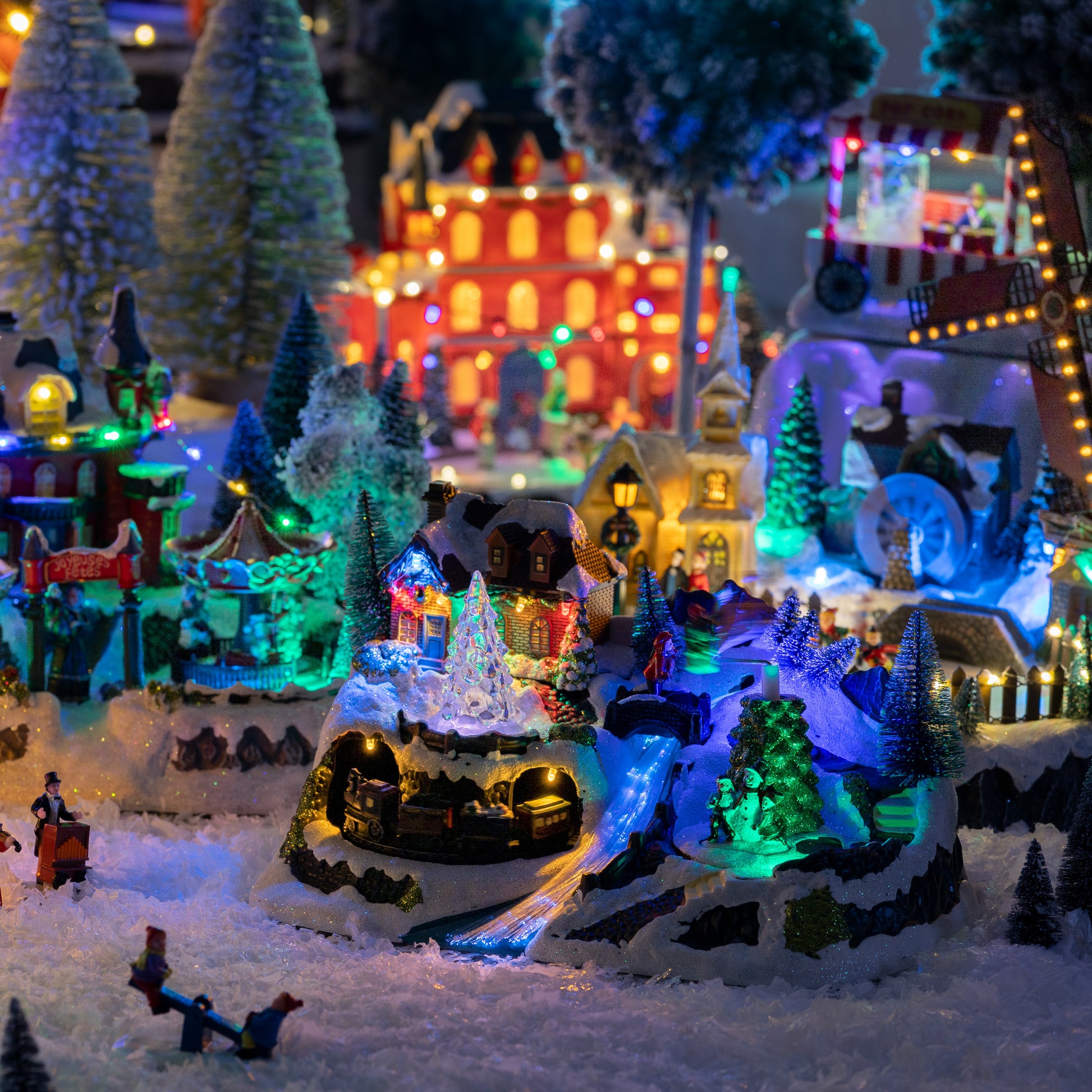 Snowd village for a festive decoration on New Year's Eve. This Christmas decorations are equipped with 7 LEDs, once connected to the mains, it will light up with a fixed light to great joy of children and adults.