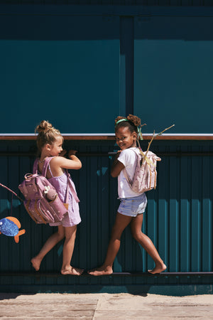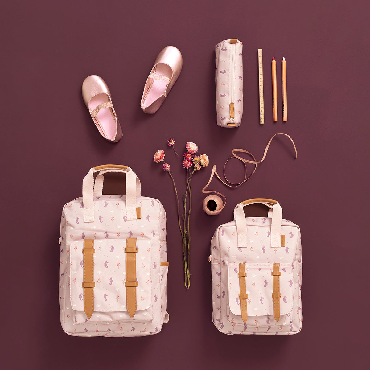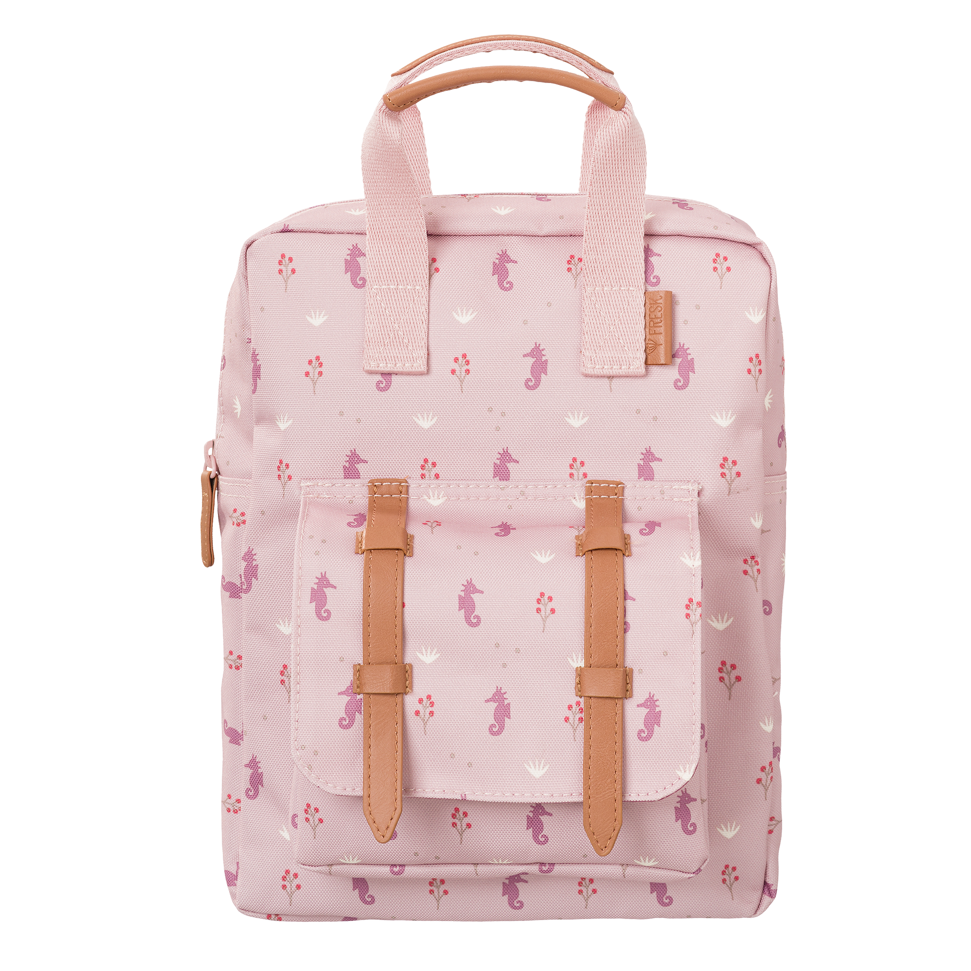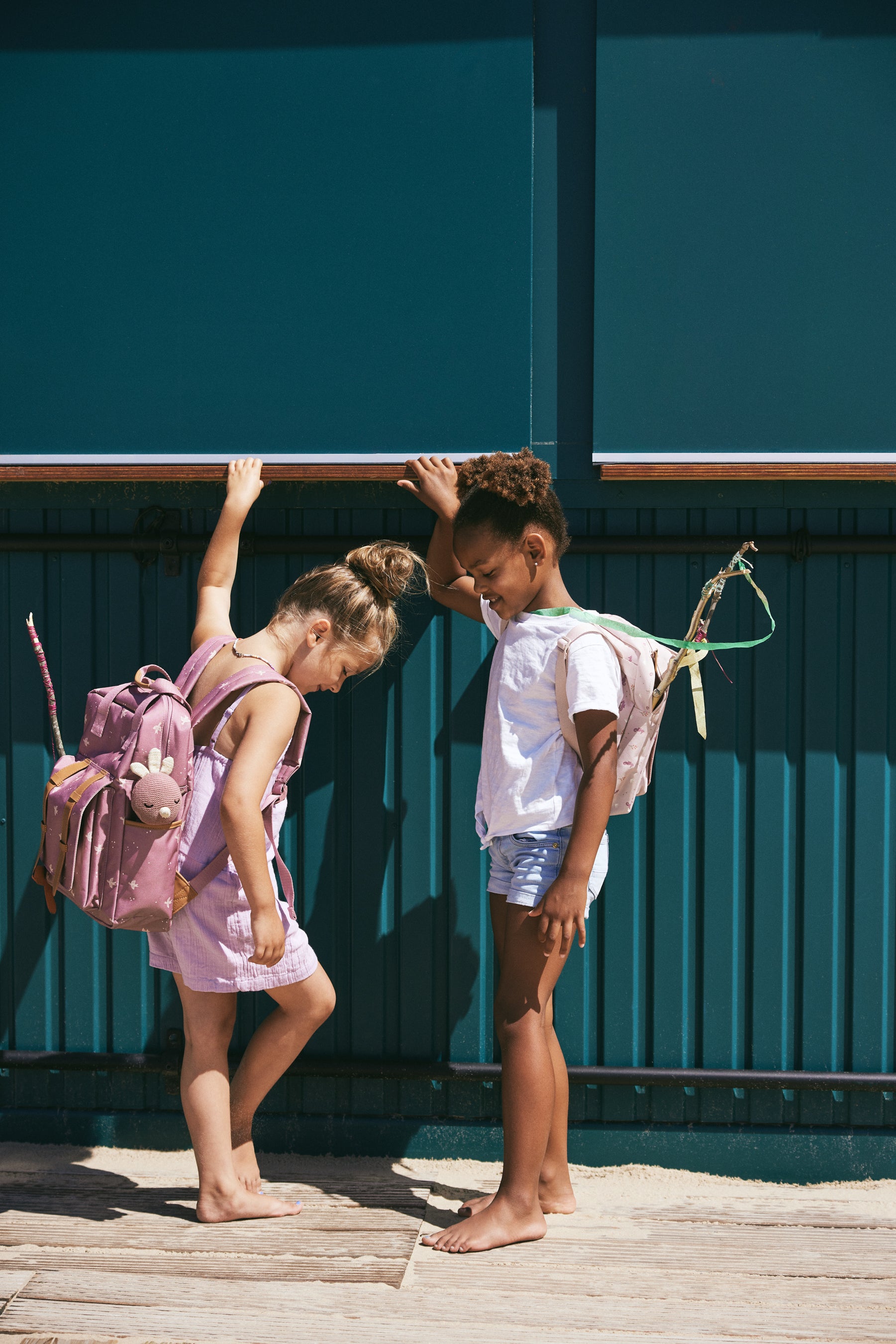 A cool and practical backpack always comes in handy, both during the summer holidays and the school period. This beautiful backpack from Fresk can perfectly serve as a school bag for children from 8 years old as well as a sports bag or swimming bag! With its classy blue color with leather finish, this is a must-have for every child with style! The backpack consists of one large compartment with a small pocket inside for smaller items. There is also a pocket at the front to store writing utensils, for example. A label inside to write down all the information about you and your child ensures that this is the perfect school bag for your darling! Features: * Color: Yellow with penguin print * Dimensions: 38x28x12 cm * Age: from 6 years * Material: 100% recycled PET bottles * Adjustable shoulder straps