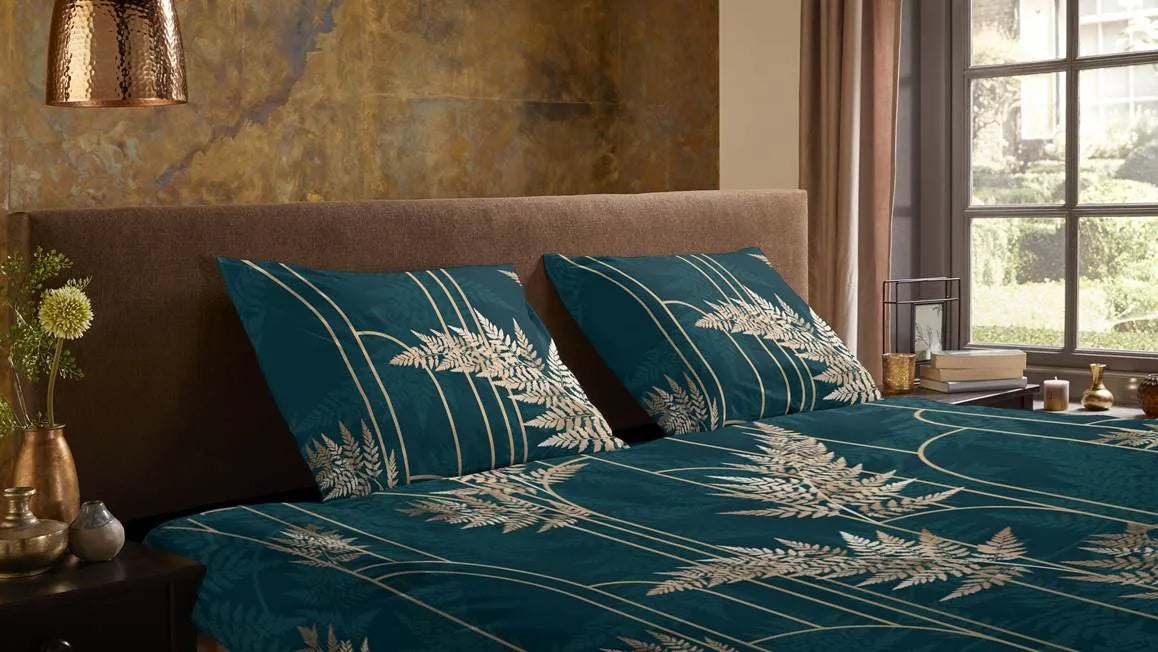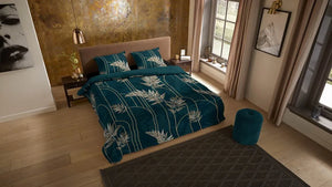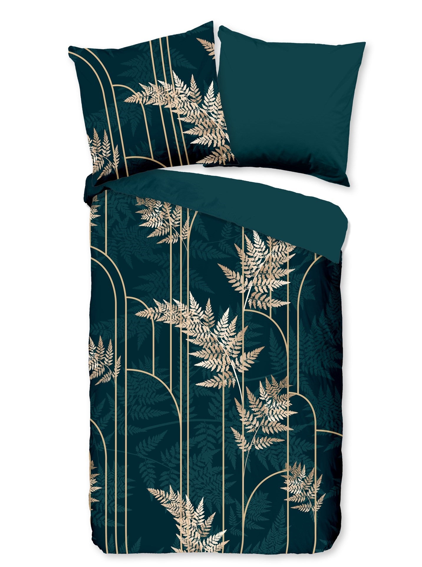 Embrace luxury and comfort with our duvet cover made from 100% microfiber. Dive into an oasis of tranquility with the lush green tones, subtly styled with gold-colored ferns that add a touch of elegance to your bedroom.