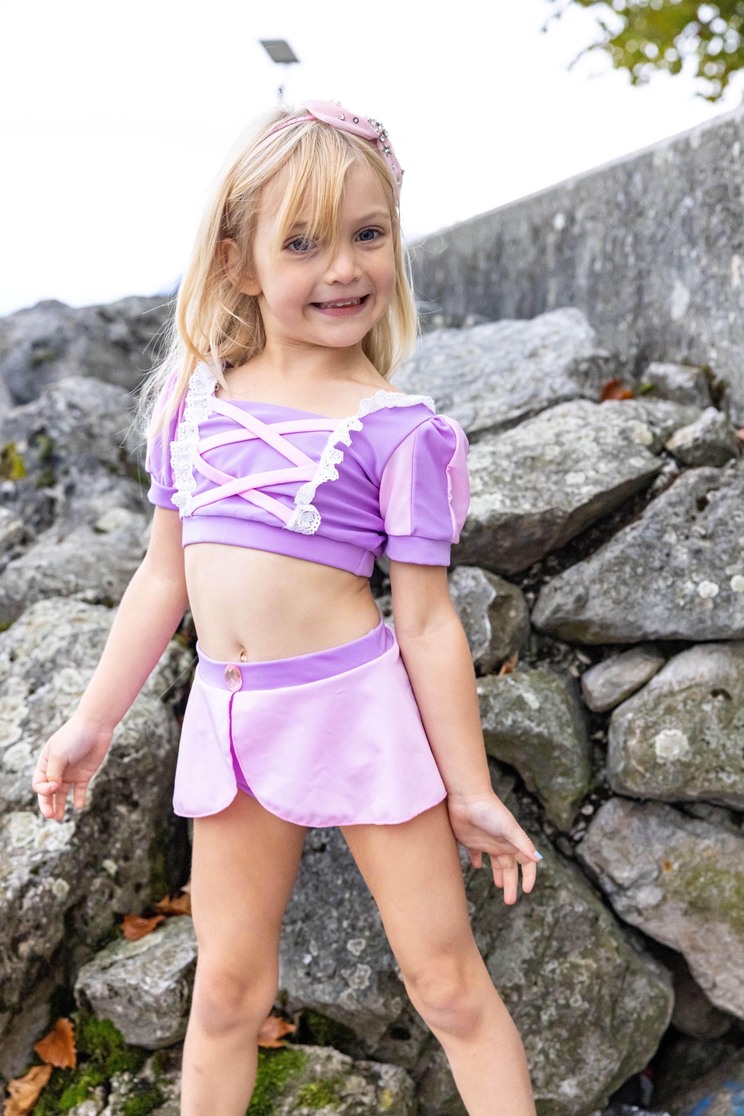 Meet the enchanting Rapunzel swimsuit for children, where fairytales come to life at the edge of the pool! This enchanting swimsuit is designed to make every little princess feel like a real Rapunzel as they dive into the water.