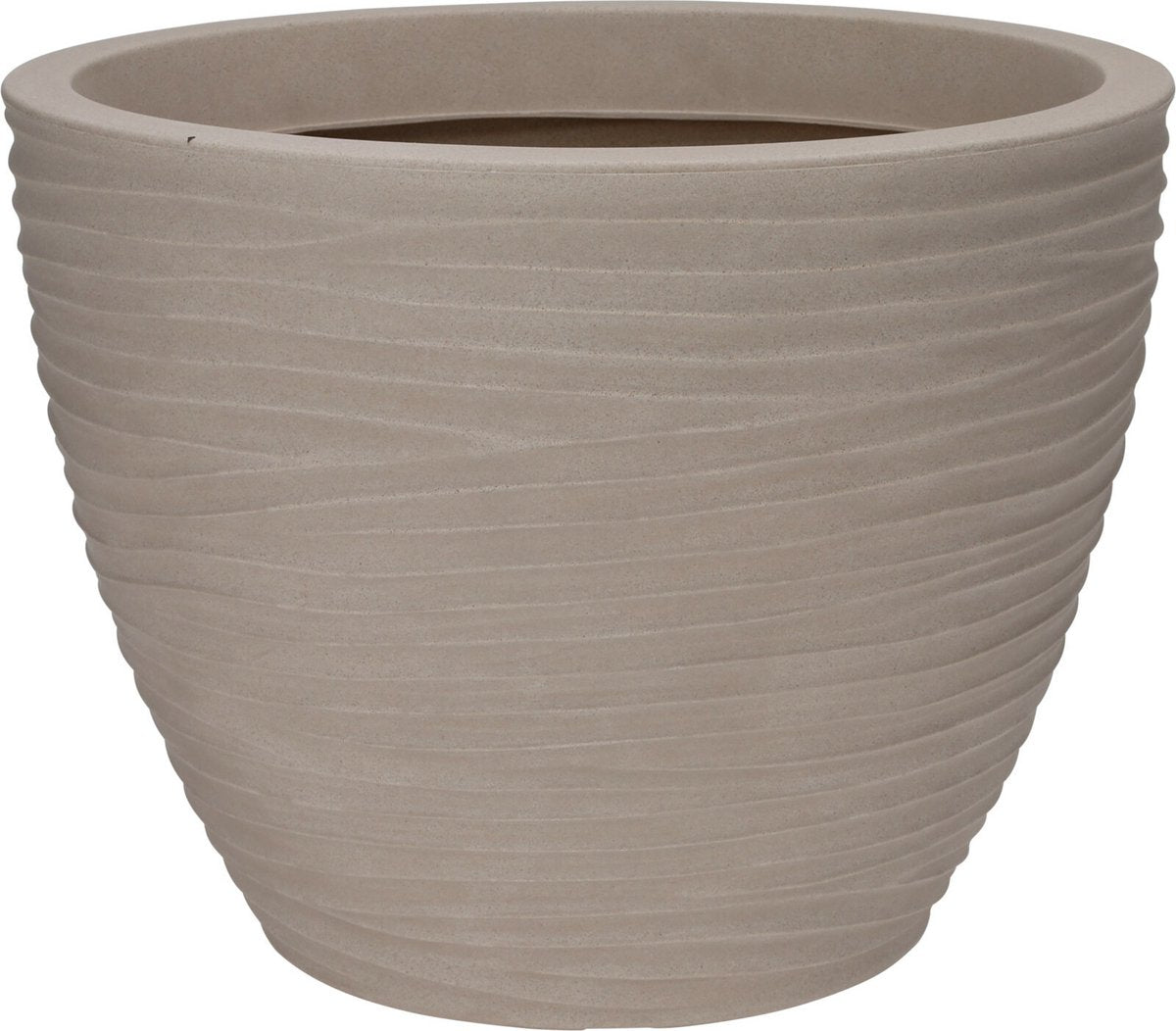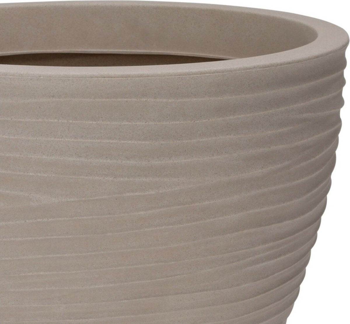 Plant pot made of sturdy plastic (polyethylene) in the color sand with ribbed stripes on the outside. This beautiful flower pot is a wonderful addition to your garden or terrace. The pot is double-walled. Can also be placed outside.