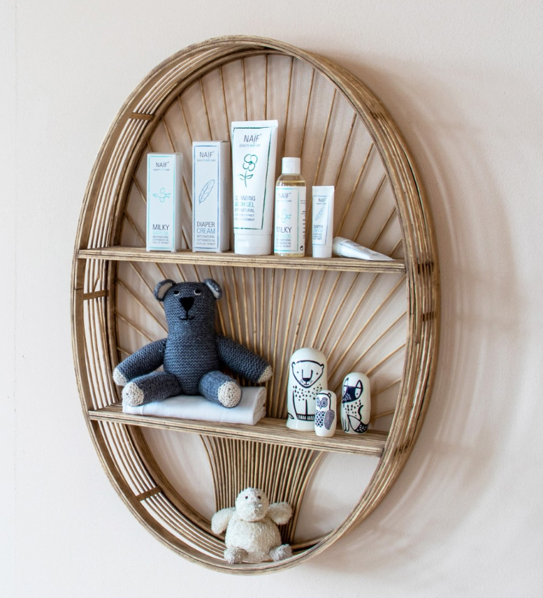 The natural color of rattan can be combined with any interior. The Kids Depot Rattan Wall rack is therefore a stylish addition to the nursery. It is equipped with a wide laying area to display some accessories. The heart shape together with the braided rattan provides a beautiful look. The wall rack is 48x23x13cm.