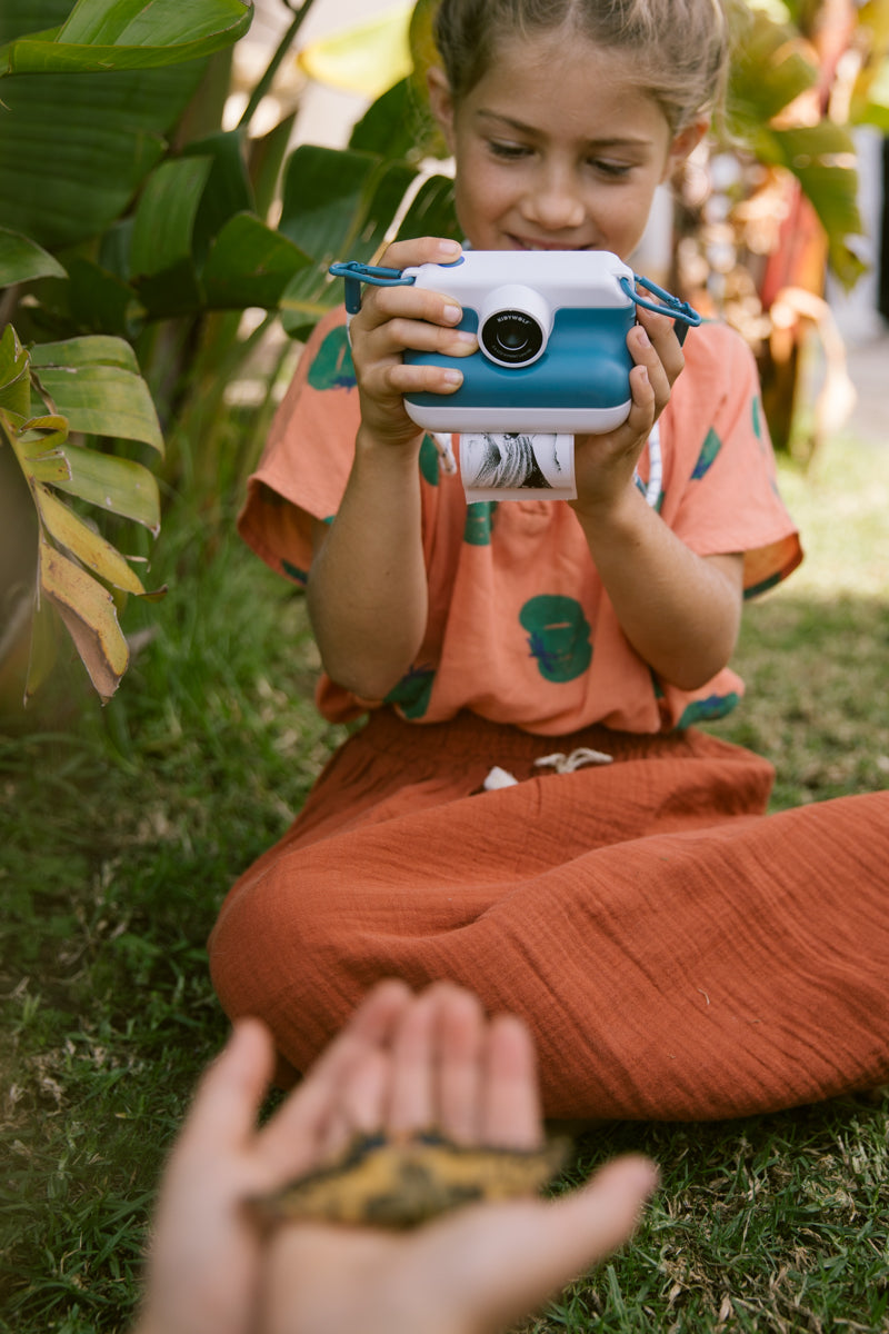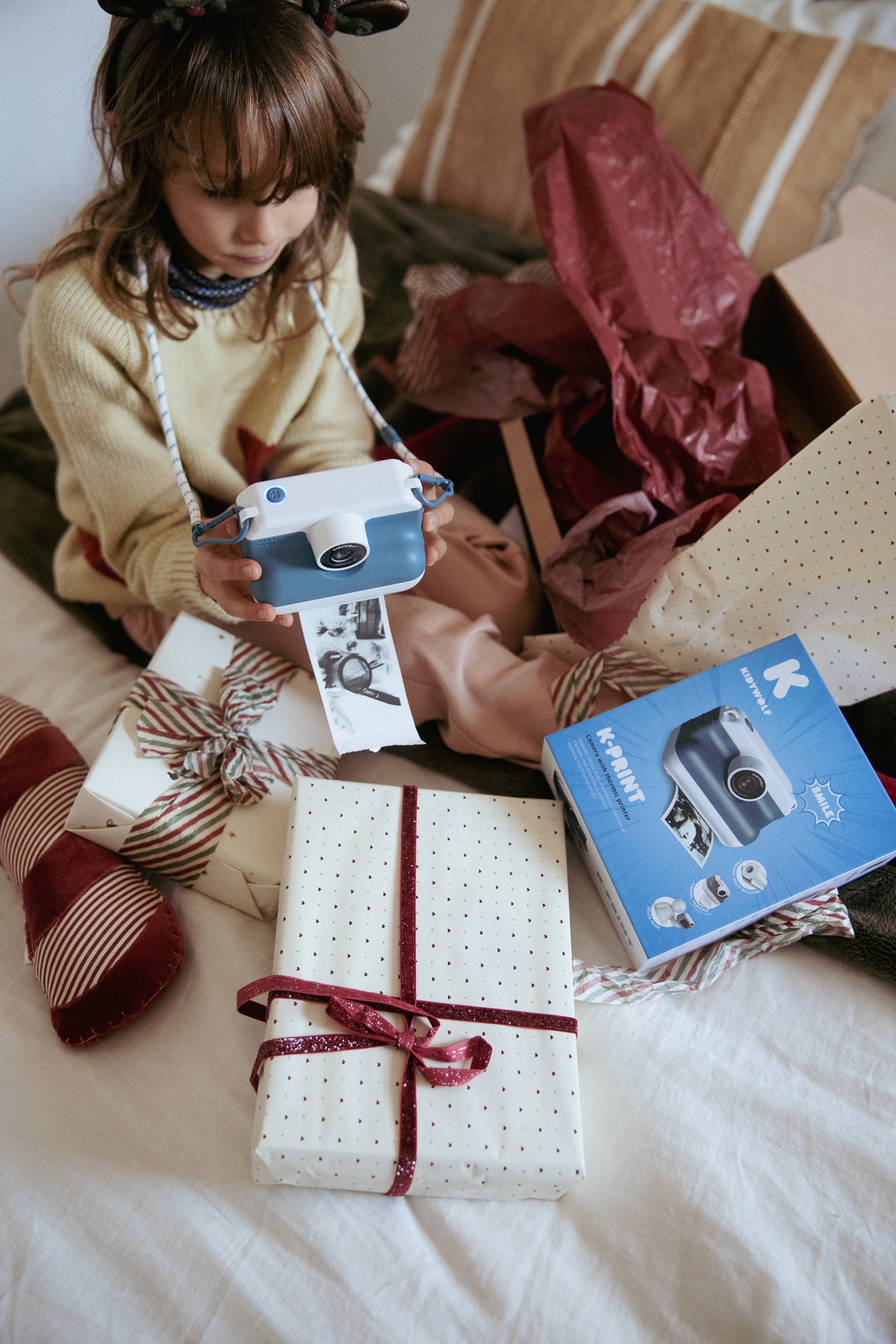 K-PRINT is een instantcamera die is ontworpen voor kinderen vanaf 8 jaar. Dankzij thermisch printen (op papier of stickers) print hij razendsnel, zonder inkt of cartridges. Een strak design, leuke filters en stickers inbegrepen: alles is aanwezig om je mooiste herinneringen vast te leggen, te personaliseren en in stijl te delen.