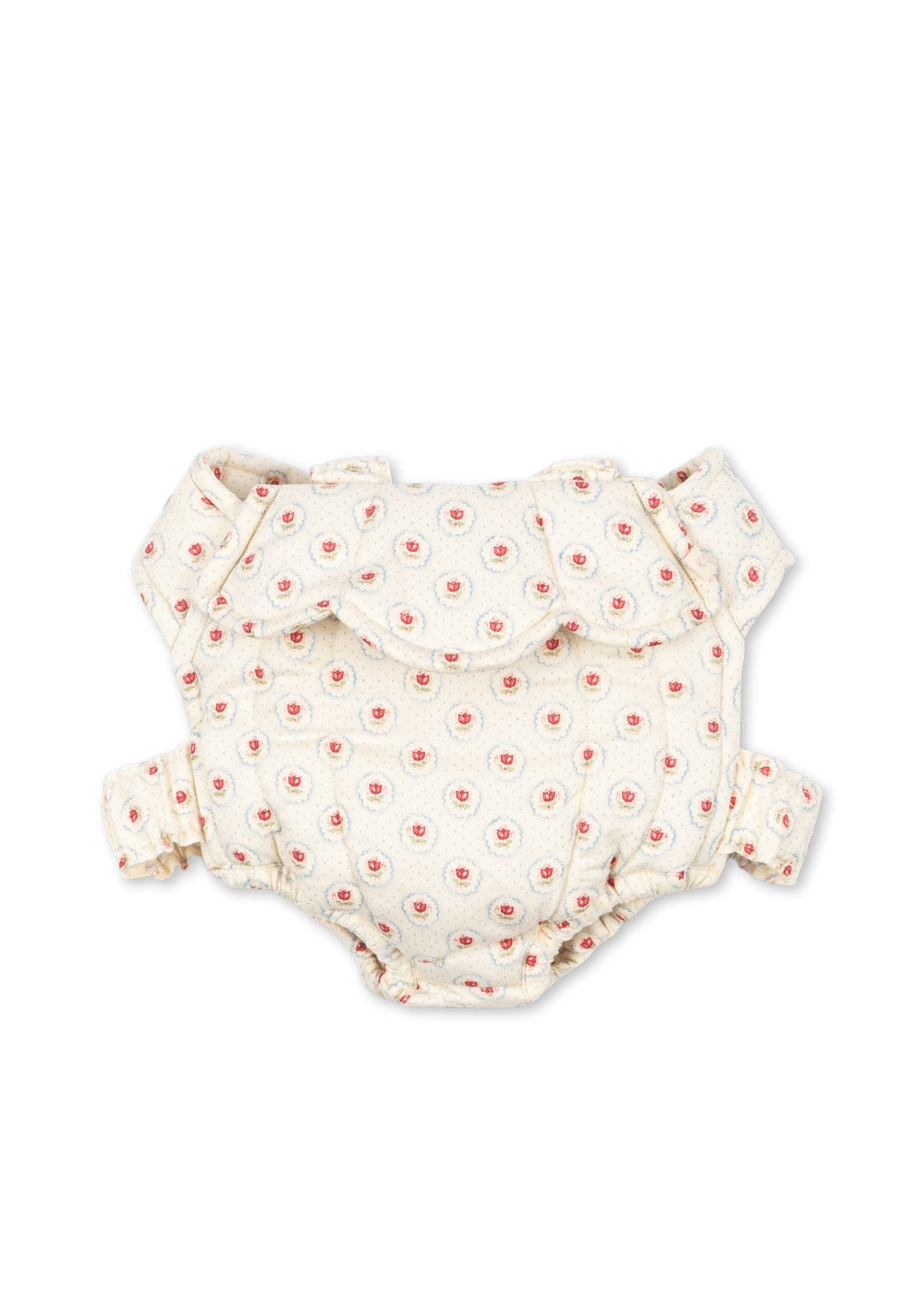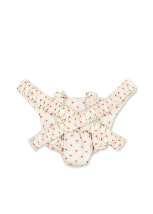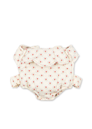 Doll carrier made of 100% organic cotton with print. With elastic bands and a wavy edge. The carrier is easy to use, comfortable and light.