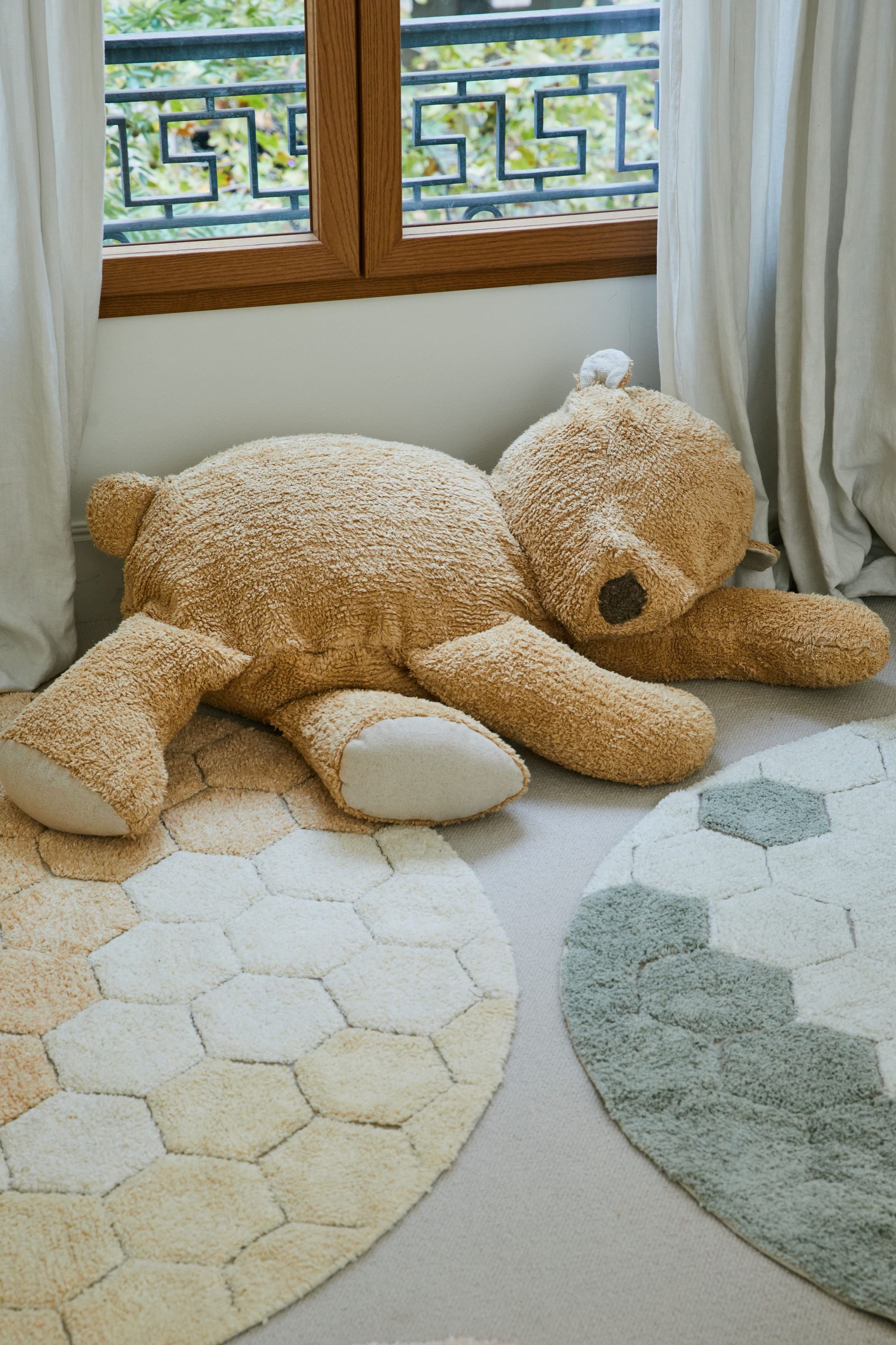 Lorena Canals Washable cotton rug - Planet Bee - Honeycomb Golden - Ø140cm