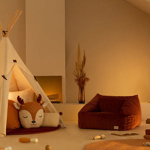 The Chelsea Velvet beanbag Night Blue combines the comfort and design of a real armchair and the advantage of an easy-to-move lightweight beanbag. This beanbag is a wonderful ottoman to plop down in, sit, laze around, play and relax. Finished with a removable cover in wonderfully soft eco-velvet. Create the coziest corner in the house and in the nursery, this beanbag is the perfect addition to any interior. Combine with all other beautiful Nobodinoz items for a harmonious whole!