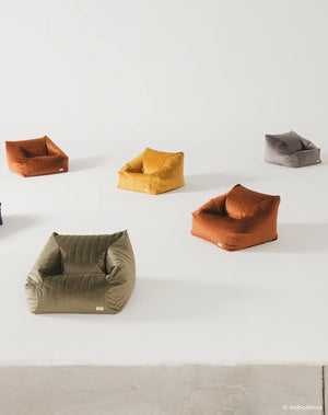 The Chelsea Velvet beanbag Farniente Yellow combines the comfort and design of a real armchair and the advantage of an easy-to-move lightweight beanbag. This beanbag is a wonderful ottoman to plop down in, sit, laze around, play and relax. Finished with a removable cover in wonderfully soft eco-velvet. Create the coziest corner in the house and in the nursery, this beanbag is the perfect addition to any interior. Combine with all other beautiful Nobodinoz items for a harmonious whole!