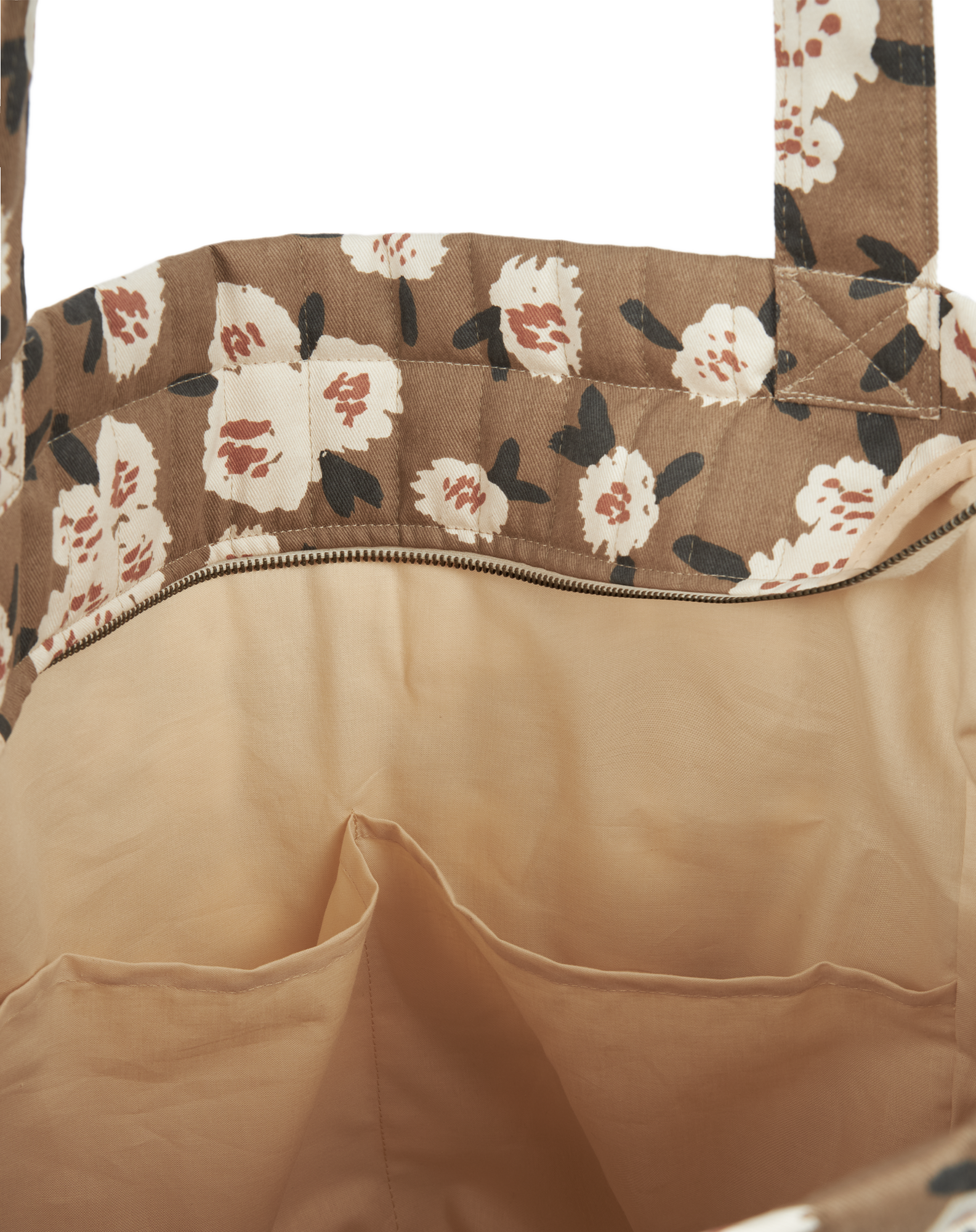 - Materials: 100% organic cotton twill (outside), 100% organic cotton (lining) and 100% polyester (filling)