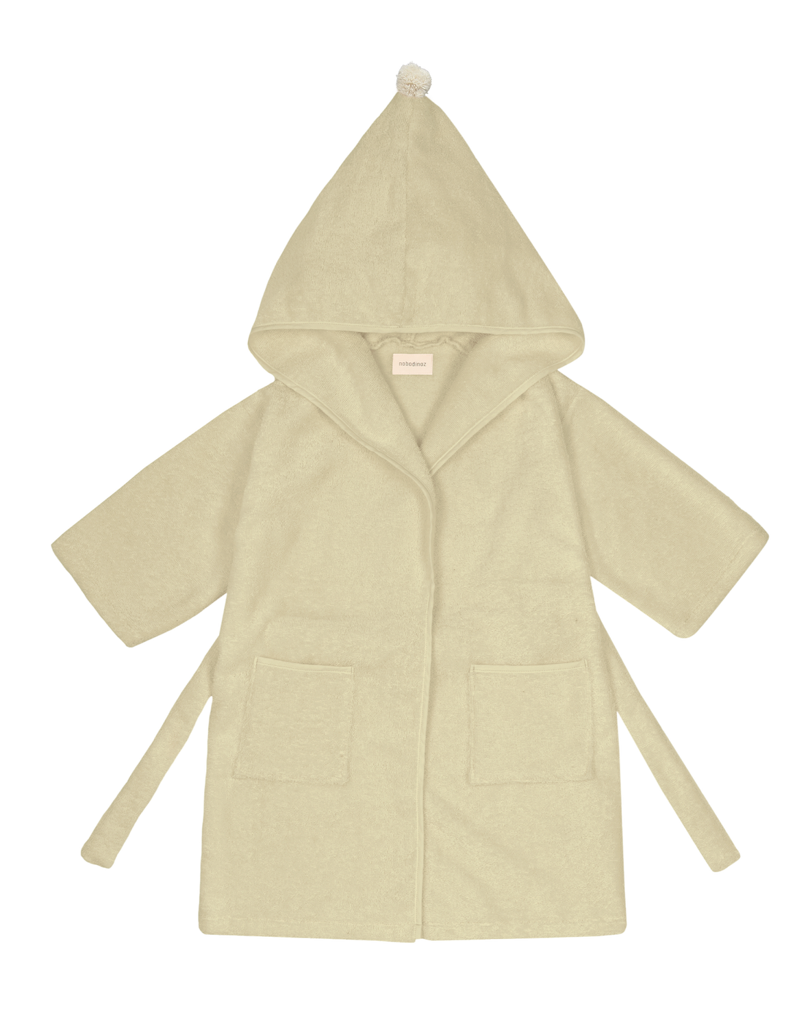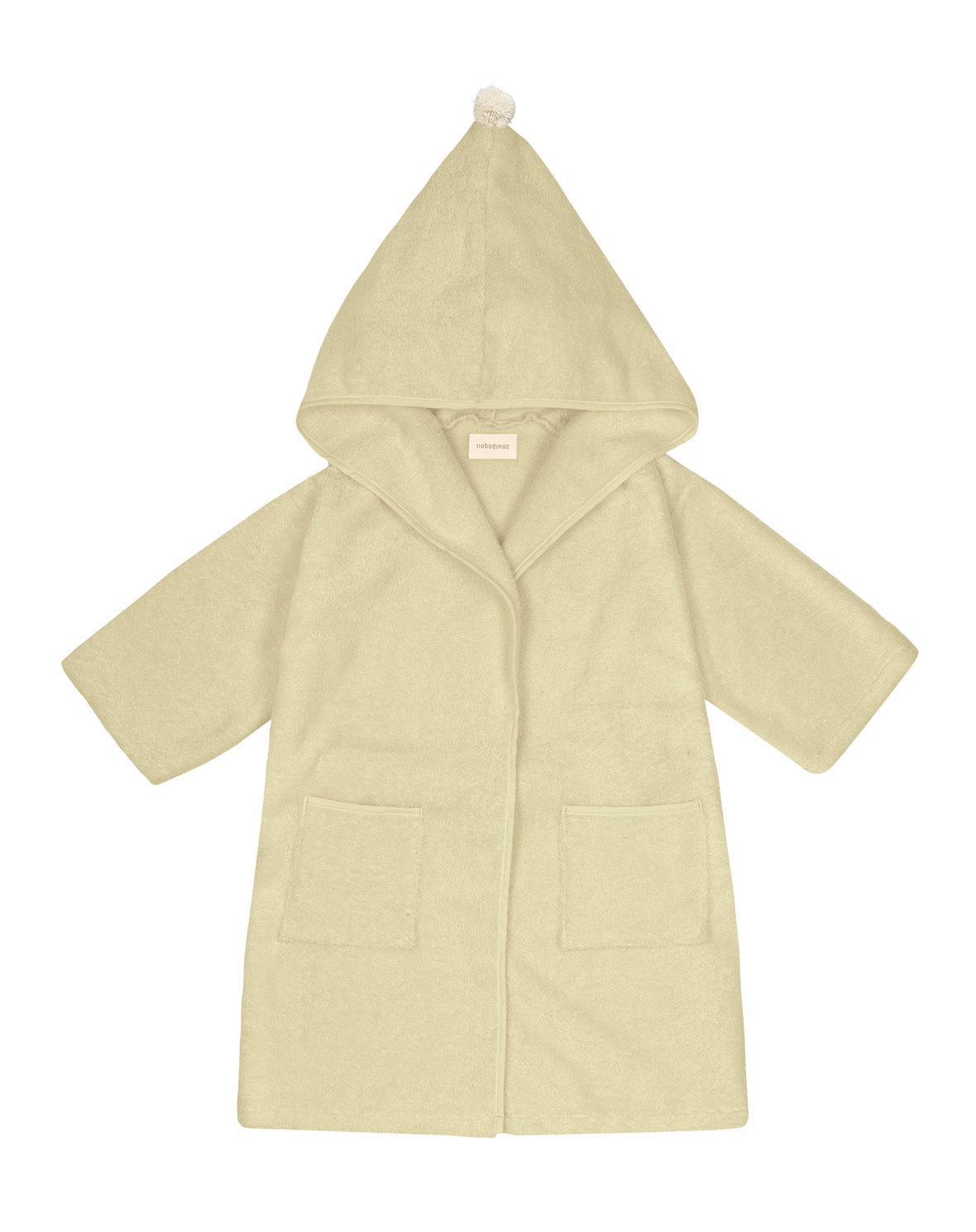 You can easily pull this soft terry cloth poncho So Cute vanilla from Nobodinoz over your child's head and wrap it around the body. There is also a hood with a pompom to cover wet hair. Your child can warm up, dry off and still keep his arms and legs moving. We are fans! The poncho is made of organic cotton terry cloth and is extra soft. The poncho is suitable for children from approximately 3 to 5 years old.