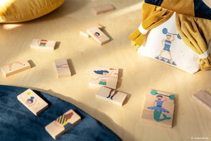 Colours, shapes, textures... your child will discover the world while playing with these fun and original wooden toys. Let your imagination run wild: mix the bodies, feet and heads of each character to create combinations that are as crazy as they are funny!