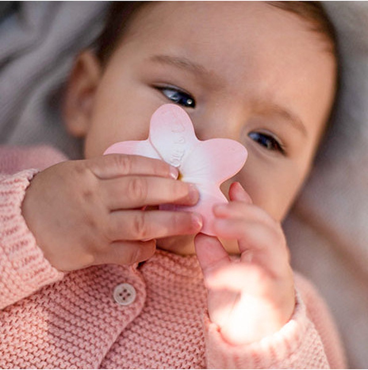 Aloha! Bella the Flower is a mini teether with an ergonomic design for newborns. The raised spots and detailed textures make it very pleasant for little ones to soothe their gums.