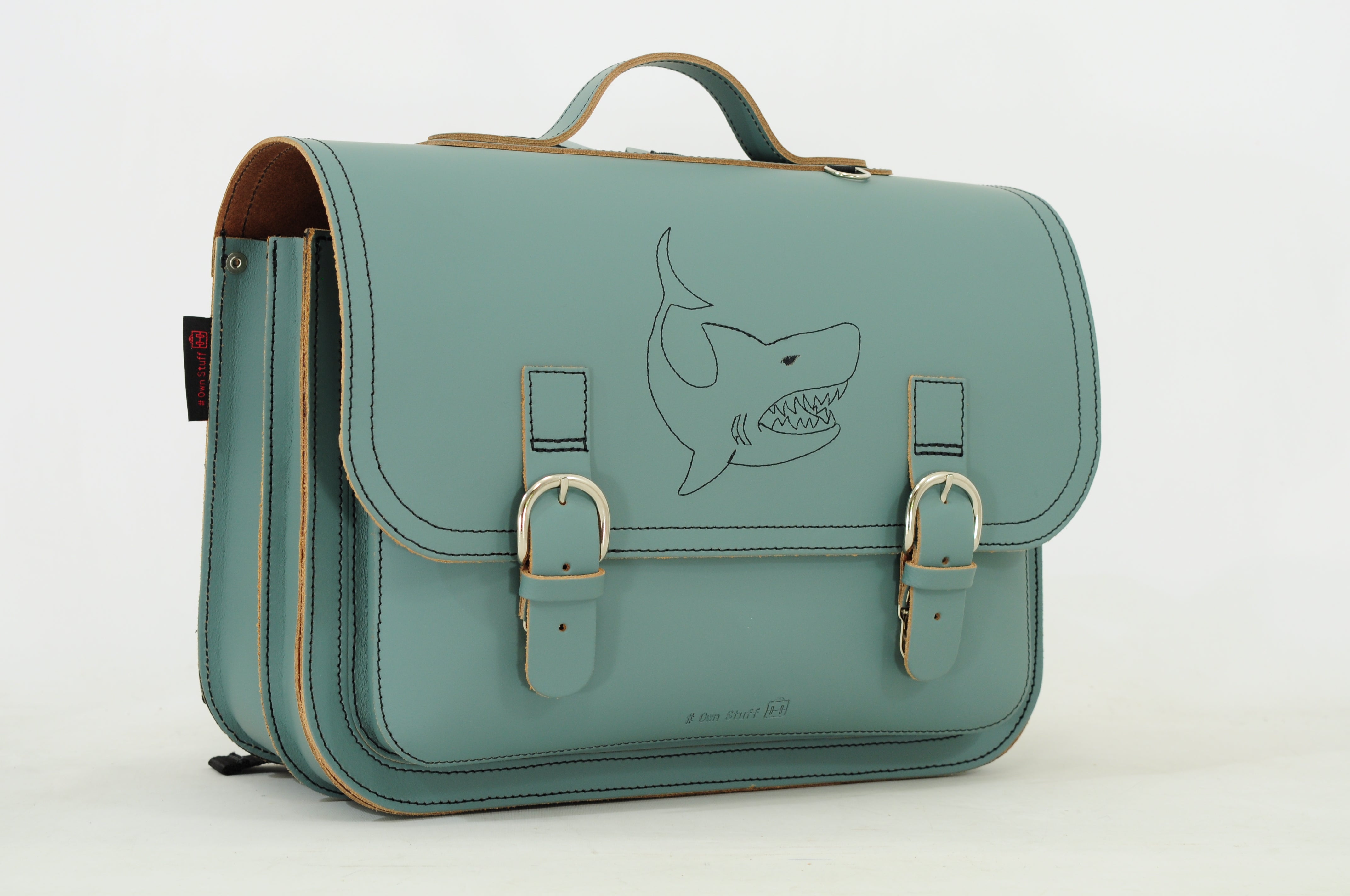 Own Stuff Lederen Boekentas Lagere school - 38x30x17cm - Shark Azul