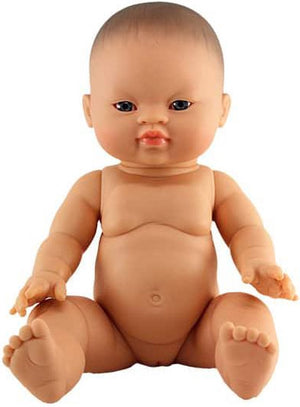 What a happy baby! And that girl smells so good! Yes, Paola Reina dolls smell wonderfully of vanilla. So pampering this baby doll is not only fun, but also delicious! A cheerful doll from Paola Reina with beautiful brown eyes for a sweet doll mother. Made from phthalate free soft PVC! The certification "Made in 100% in Spain" guarantees compliance with the strictest European regulations on the quality of Paola Reina's doll. Made from phthalate free soft PVC. This makes this doll suitable from 1 year old, because it does no harm if the doll is put in the mouth! A safe doll!