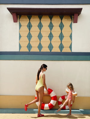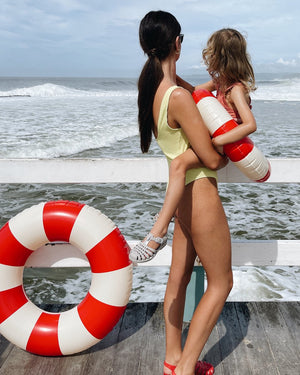 The Petites Pommes swim ring is a children's classic reborn - made with the attention to detail we strived for to make it last for seasons to come. Our signature striped floats come in 4 different sizes for toddlers to adults, and in a range of beautiful colors to complete any summer look!