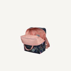 Mooie stevige kinderrugzak met aan de voorkant een vak met rits voor kleine spulletjes. Aan de binnenkant van de tas vind je een insteekvak over de hele rug die sluit met klittenband. Het hoofdvak is ruim en heeft een verstevigde bodem, waardoor de tas mooi in vorm blijft. Je kunt verrassend veel spullen kwijt in deze rugzak. De tas draagt fijn door de verstelbare schouderbanden en stevige hengsels.