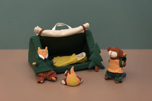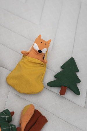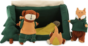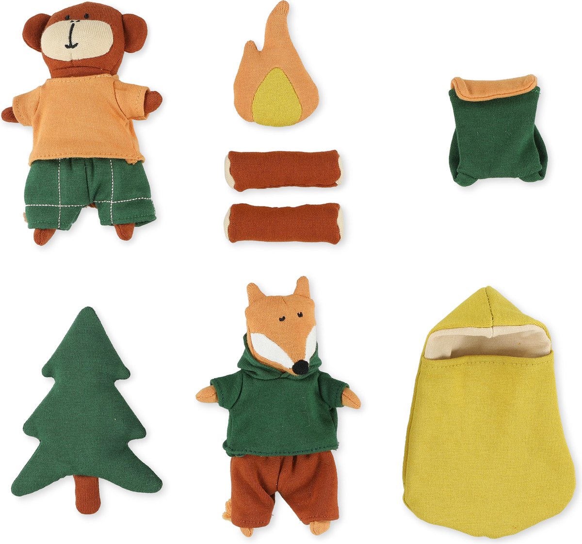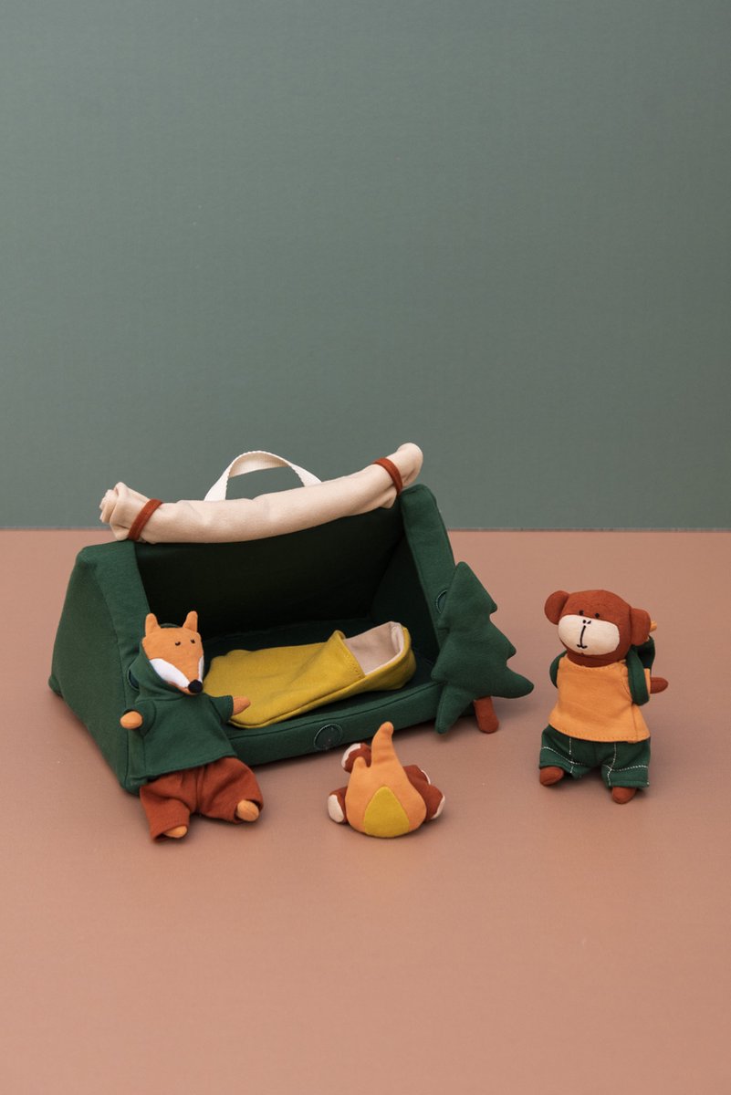 Want to go camping with Mr. Fox and Mr. Monkey? Grab your backpack and leave for the forest in search of wood for a cozy fire. In the tent you will find Mr. Fox and Mr. Monkey in their camping outfits, together with all kinds of accessories for an adventurous night in the forest. This series of animal dolls and their fun accessories stimulate children's interest and creativity. Each small setting encourages children to unleash their own imagination and be creative. Together with these little dolls, children discover the endless fun of open-ended play!
