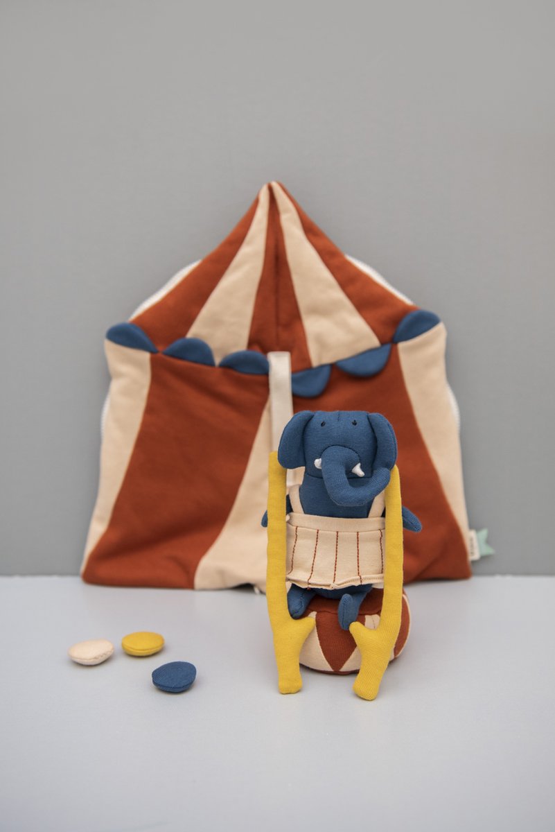 The circus is in the country! Mrs. Elephant is here to teach you all her greatest circus tricks. Make it a fun show and invite all your friends to come see your performance. Applause and standing ovations guaranteed! Zip into the circus and take this world of imagination with you wherever you go! This series of animal dolls and their fun accessories stimulate children's interest and creativity. Each small setting encourages children to unleash their own imagination and be creative. Together with these little dolls, children discover the endless fun of open-ended play!