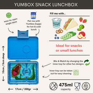 Yumbox Bentobox/Snackdoos 3 vakken - 17x13x5cm - Surf Blue/Dinosaur Tray