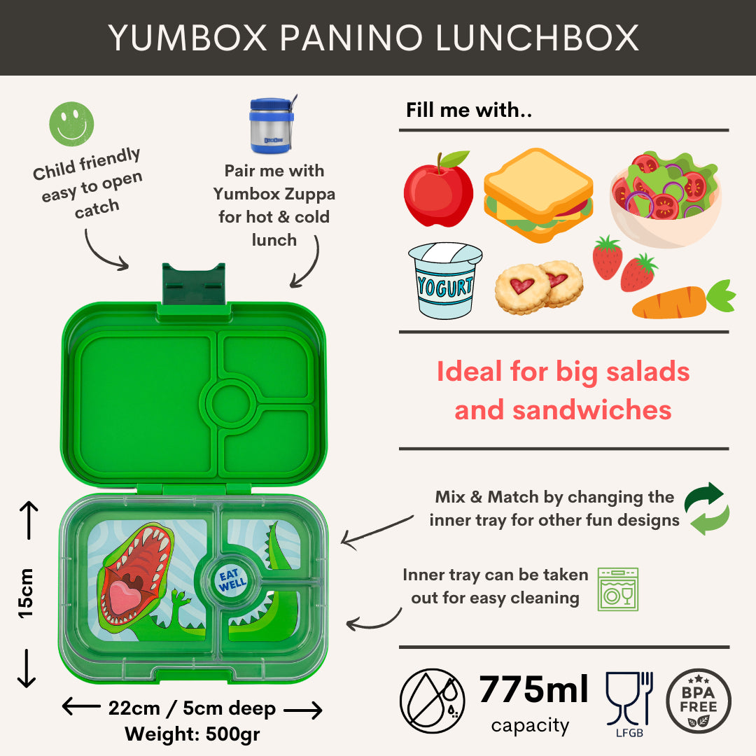 Yumbox Panino Bentobox 4 vakken - 22x15x5cm - Jurassic Green/Dinosaur Tray