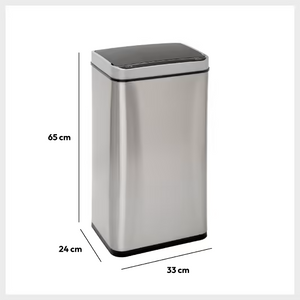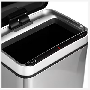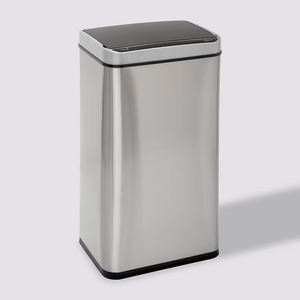 Cette poubelle silencieuse se compose d'une poignée, d'un seau amovible et d'une pédale.