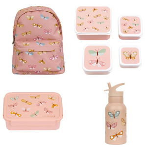 BEAU by Bo A Little Lovely Company Back to school set - Rugzak/Drinkfles RVS/4 Snackdozen/Bentobox - Vlinders