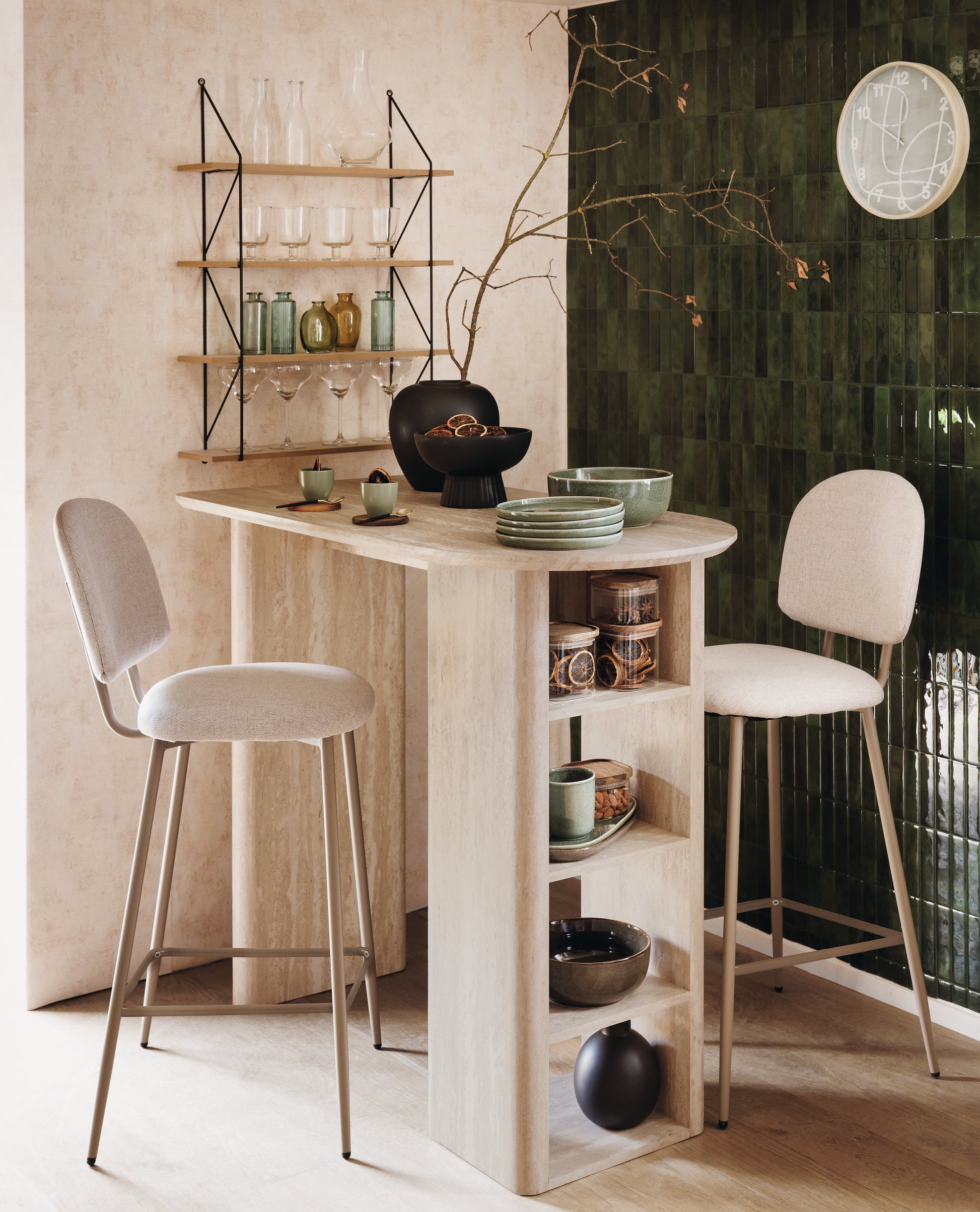 Table d'appoint moderne aspect travertin – Cette table élégante allie élégance et simplicité. Grâce à son design organique doux et à son aspect pierre naturelle, il s'intègre parfaitement dans n'importe quel intérieur, du moderne au bohème. Idéal comme table basse, table d'angle ou accent décoratif.