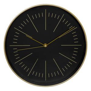 Cette horloge murale est réalisée avec des accents dorés et noirs et a un diamètre de 30 cm. Le design élégant apporte certainement une touche moderne à n'importe quel intérieur. L'horloge est parfaite pour les salons, les bureaux et les chambres.