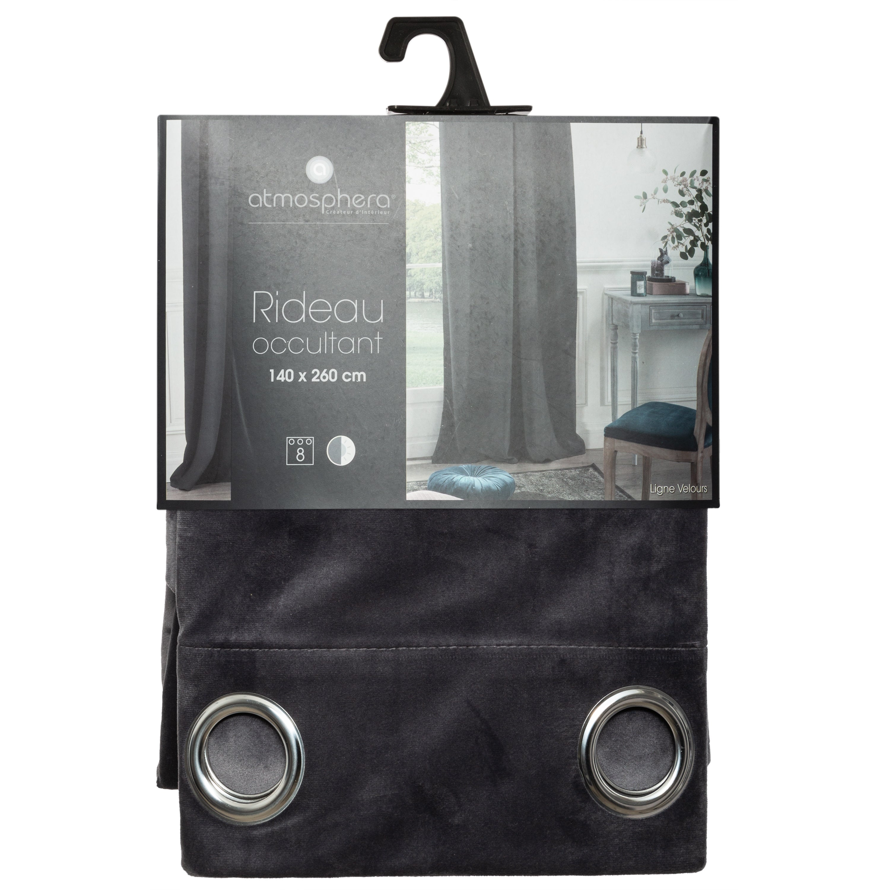 Rideau Occultant en Velours Atmosphera - 140x260cm - Gris