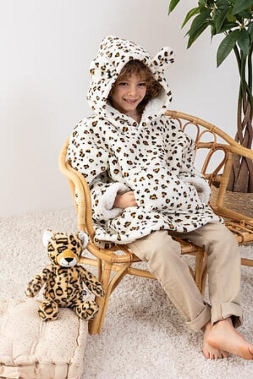 Atmosphera Kids Plaid sweater luipaard kind - Trui - Extra zacht - Fleece trui - ONE SIZE - 3 tot 10 jaar - Met zakken