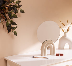 Geef je dagelijkse routine een stijlvolle upgrade met de Wavy Bliss Tafelspiegel. Met zijn unieke golvende ontwerp en hoogwaardige materialen is deze spiegel een echte blikvanger in elke ruimte. Perfect voor je make-up, skincare of als opvallend decoratief element. Praktisch, modern en elegant – de Wavy Bliss Tafelspiegel maakt elke reflectie een beetje magischer.