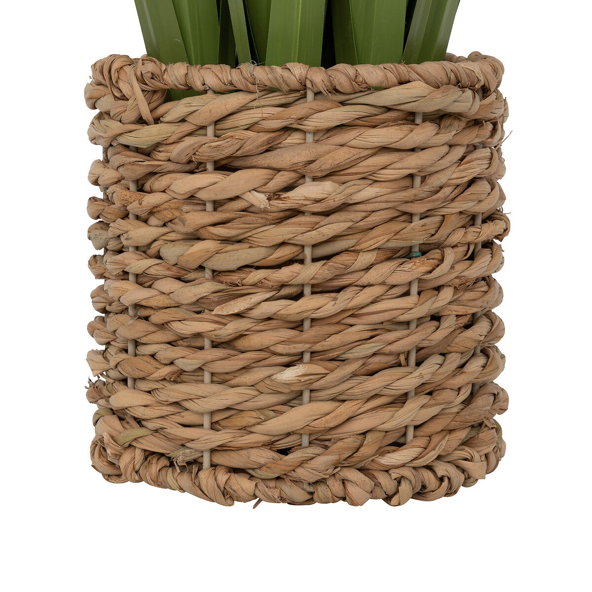 La plante d'art de l'atmosphère "Zya" dans le pot est parfaite pour ajouter du vert à votre intérieur sans les tracas de maintenir une plante naturelle. Cette grande plante verte artificielle, placée dans une casserole à paille tissée, peut être placée sur le sol au-dessus d'un tapis de jute ou sur un grand meuble en bois exotique pour créer une atmosphère chaude.