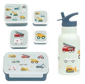 BEAU by Bo A Little Lovely Company Back to school set - Drinkfles RVS/4 Snackdozen/Bentobox - Voertuigen